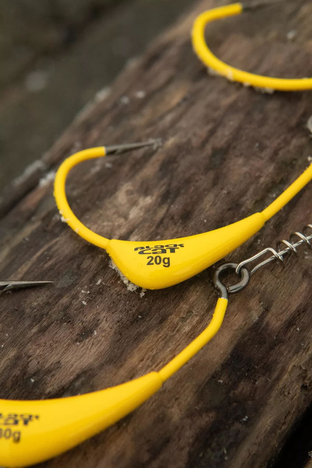 The Black Cat Mega Offset Hook is a strong, reliable offset hook designed for hidden hook rigging of soft plastic lures. The design aims to preserve the lure's natural movement while reducing the chance of snags in areas where hidden hook use is important due to vegetation or obstacles. The 30 gram version provides balanced sinking, making it suitable for reaching deeper water layers as well.