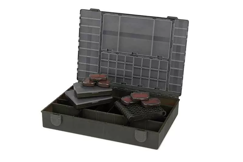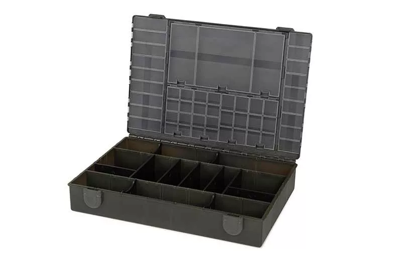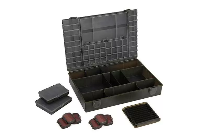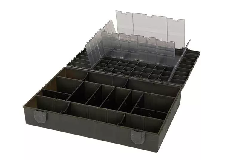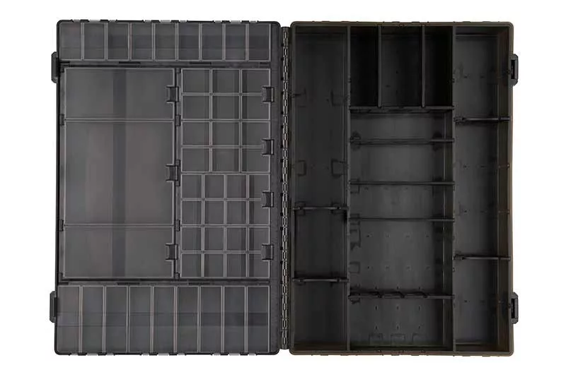 The Fox Edges Large Tackle Box is a large, durable box, perfectly suited for storing fishing equipment. The box dimensions are 35 cm x 25 cm x 7 cm, providing enough space for all important fishing tackle elements, including leaders, rigs, hooks, line, rig-making tools, and much more.