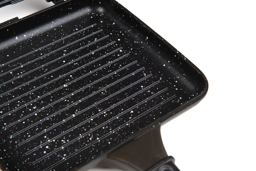 » Non-stick marble coating facilitates cooking and cleaning.