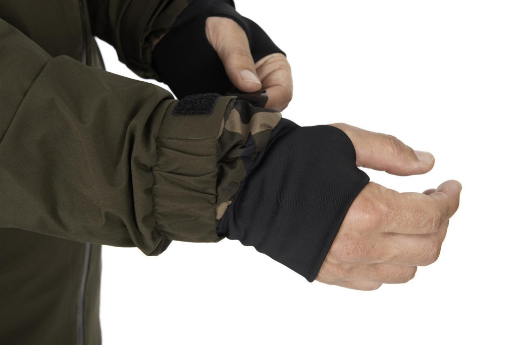 The Fox Khaki Sherpa Tec Jacket has been specifically designed for fishing. The removable hood and adjustable drawstrings allow you to adapt to weather conditions. When the temperature drops and strong winds blow, the jacket provides perfect protection. The Sherpa-lined pockets provide extra comfort for your hands, so you don't have to worry about the cold when watching for bites motionless for long periods.