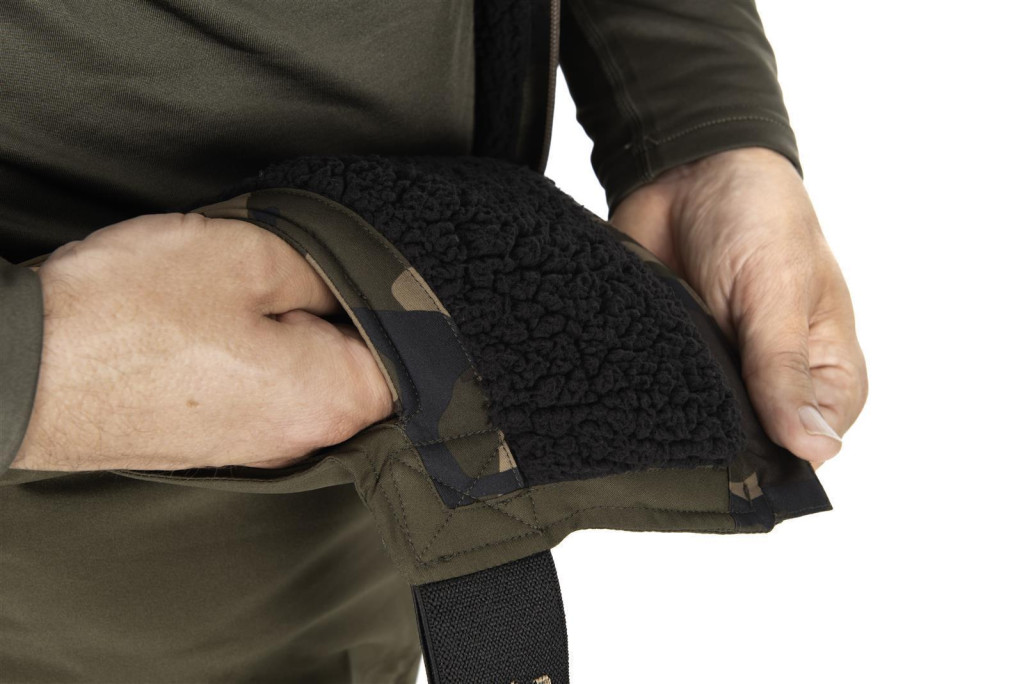 The inner part is lined with Sherpa fleece, which provides excellent thermal insulation in cold weather, keeping you warm even during the most severe winter fishing. The softness and thickness of the Sherpa fleece ensure that the overalls are not only warm but also comfortable to wear.
