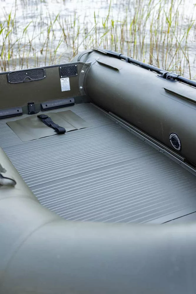 The design of the Fox Inflatable Boat has been specifically optimized for windy and wavy water conditions. The raised bow and unique shape allow for easier navigation, while also facilitating the precise placement of tackle. The extra long and wide interior space provides comfortable movement, which is particularly advantageous during a longer fishing session.