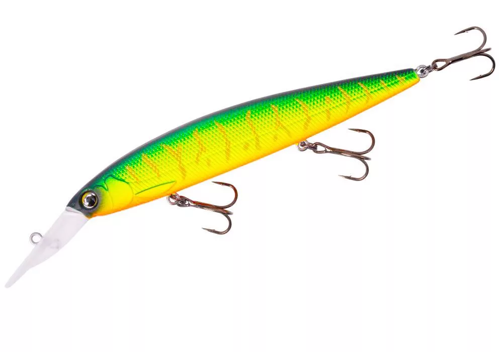 The CEANA JERK MIDDLE is a floating longbill minnow lure. The 11 cm version dives to a depth of approximately 3 meters. It can be used effectively with linear retrieve interrupted by pauses, as well as brought to life with jerks or twitches. It is ideal for sea bass fishing, coastal trolling in saltwater, and targeting perch and zander in deeper freshwater areas.