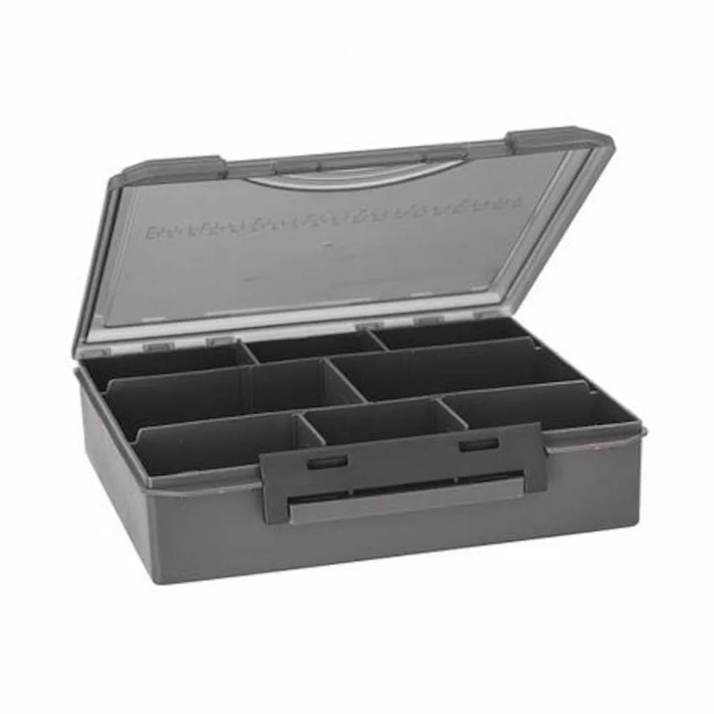 A 23 x 20 x 6 centimeter box designed for well-organized storage of equipment, the internal divisions of which can be customized as required. For storing smaller accessories, hooks, clips, and swivels, 4 pieces of 10 x 6.5 x 2.5 centimeter boxes are available, which have three, four, six, or eight compartments. Both the larger and smaller boxes are equipped with durable clasps, allowing them to be perfectly closed. Its material is robust, and a practical measuring scale is placed on the translucent lid. An excellent choice for any angler who likes to store their equipment in an orderly and clear manner.