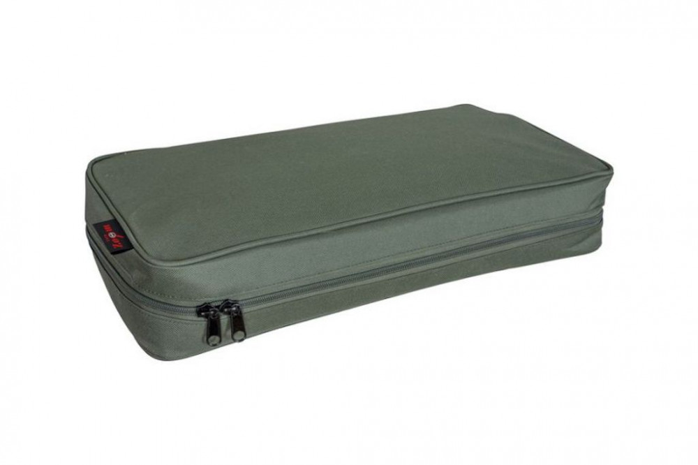 A bag suitable for storing buzz bars, made of durable material with a strong zipper. A great advantage is that even a buzz bar equipped with bite alarms can comfortably fit inside. Velcro ensures proper fastening. It can be packed from two sides, and a lined divider has been placed in the middle, protecting the equipment stored within. Dimensions: 43x27x5 cm