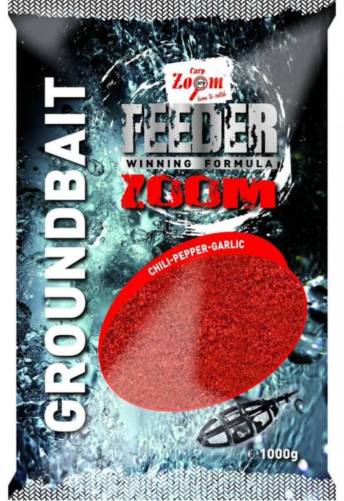 Feeder Zoom groundbait. Groundbait mixtures primarily developed for feeder and traditional bottom fishing. A special groundbait family with a three-flavor combination, homogeneous, and fine particle size. They quickly attract large fish to the baiting area and keep them there for a long time, thus increasing the chance of a catch. Chili-pepper-garlic: a fantastic triple flavor combination that guarantees a quick and long-lasting attracting effect. Fast dissolving, homogeneous granular structure, active groundbait. For waters above 10 °C.