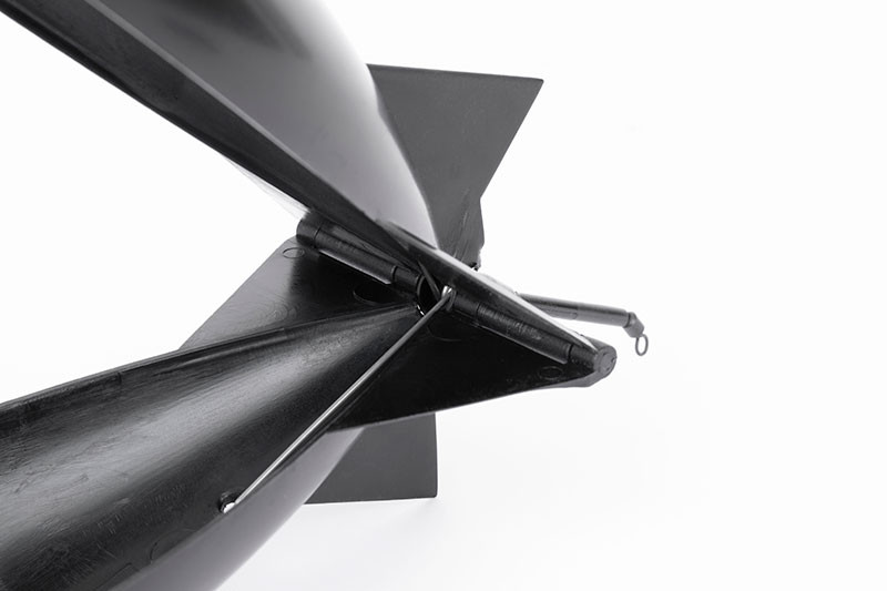The bait rocket has a streamlined, ergonomic design that facilitates use and guarantees a stable flight path even in strong winds. It is made of durable, lightweight plastic that resists wear and tear during regular use. The precisely designed push-button mechanism ensures that the bait is released immediately when the Spomb hits the water surface. This feature is particularly useful as it completely eliminates the risk of bait falling out during the cast.