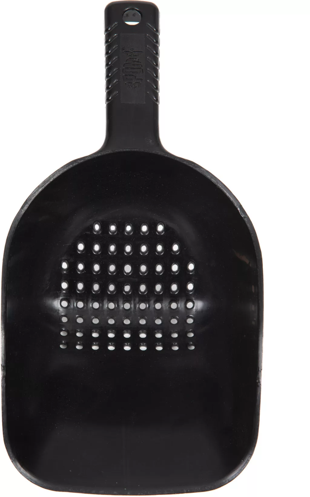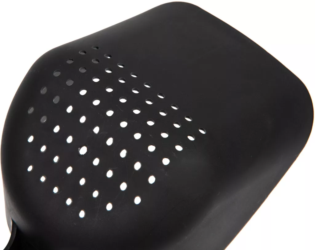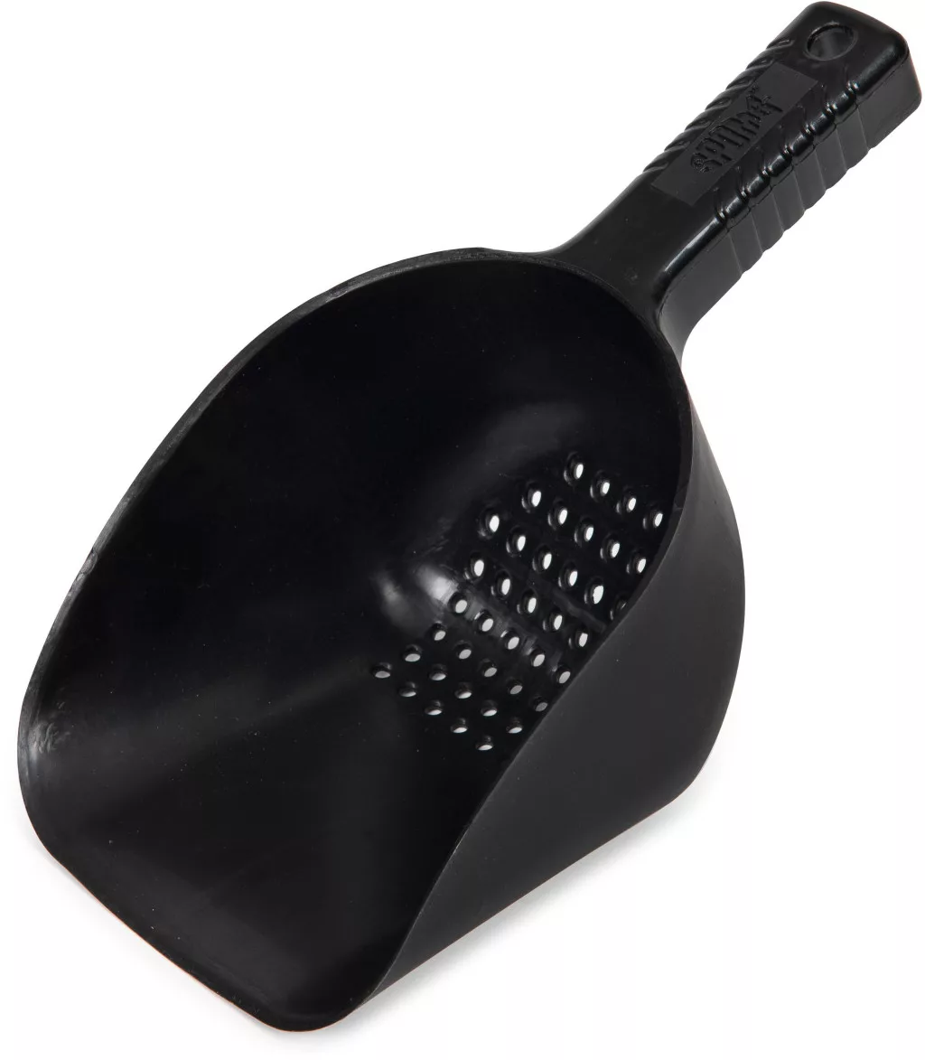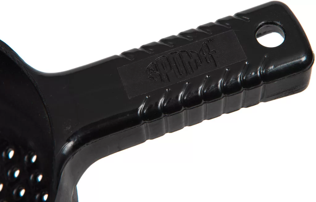 The spoon has a one-piece, compact design, making it extremely durable and easy to handle. The holes located on its body help drain excess liquid, which is especially useful for wet mixes. Its size and shape are designed to fit comfortably in any Fox or Spomb bucket, so it doesn't require separate storage and is always at hand during fishing.