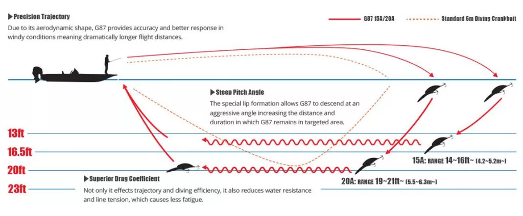 The G87 has broken through what many considered the ultimate barrier in crankbait development, creating a new milestone. It is not only the first lure of its kind in the world but has also opened a new peak and new frontiers in crankbait engineering.