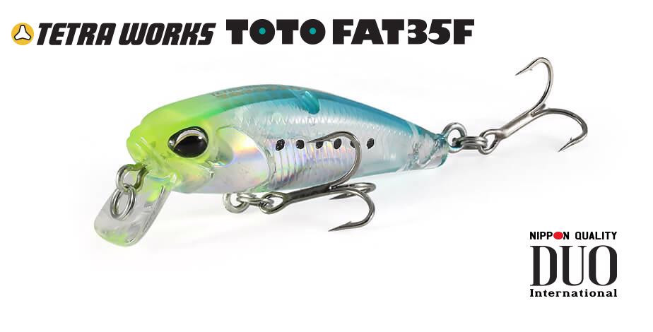 The TOTO FAT35 is the smallest member of the TOTO series, with a 35 mm body. It's not just small; its fat body generates a bouncing movement that attracts fish with vibrations and entices them to bite! We focused on this during its design. Even with very slow retrieves, it effectively grips the water and creates waves to attract fish. This is a floating type that can also be used as a TOP lure in calm water.