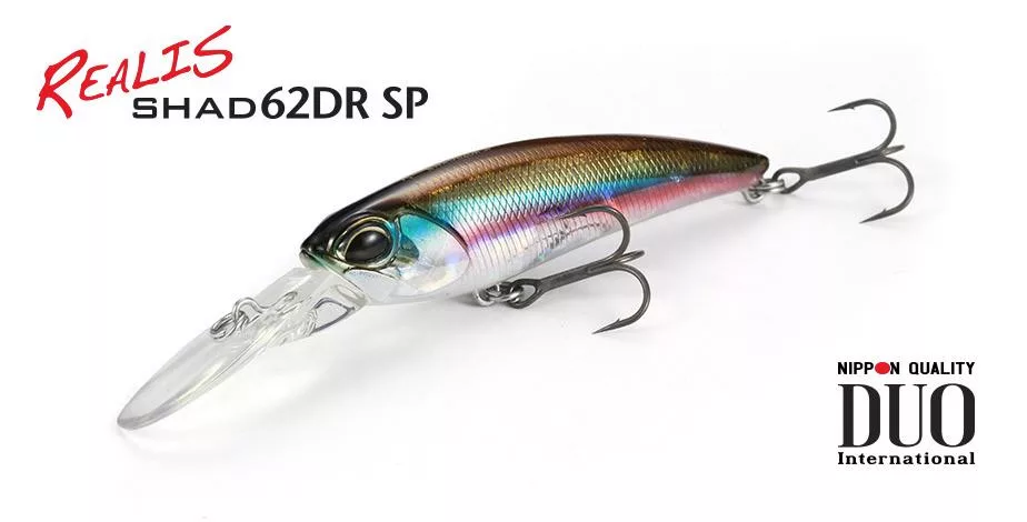 The Realis Shad 62DR offers stress-free, fast diving action and excellent castability. Its versatility is ensured by its sensitivity to various retrieve speeds and rod techniques, increasing the covered depth and width.