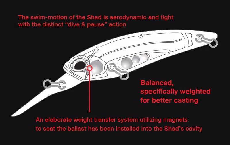 » Deep-diving, fast-sinking shad with stable casting performance