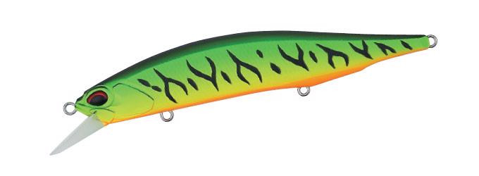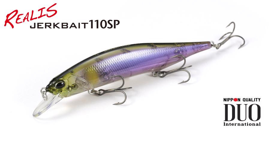 The new size of the jerkbait family, the 110SP, is a "bite-sized" jerkbait that allows for more effective water coverage and longer casts. Its semi-flat side and rounded edges combine the flash angles, creating a unique shape. The 110SP emits wider flashes than fully rounded jerkbait bodies, while maintaining the structural integrity of the 100DR. The DUO trademark flatside design provides an even wider flash area.