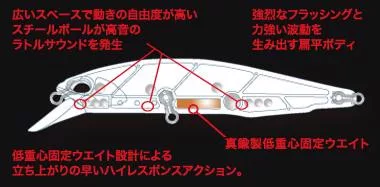 The strong flash emitted by the 100 is outstanding compared to other rip baits of similar size. This lure owes its high profile and its ability to turn its body 180 degrees (belly up), which can be achieved with light rod twitches. The 100 also excels as a rip bait, allowing it to be "ripped" without requiring significant rod tension.