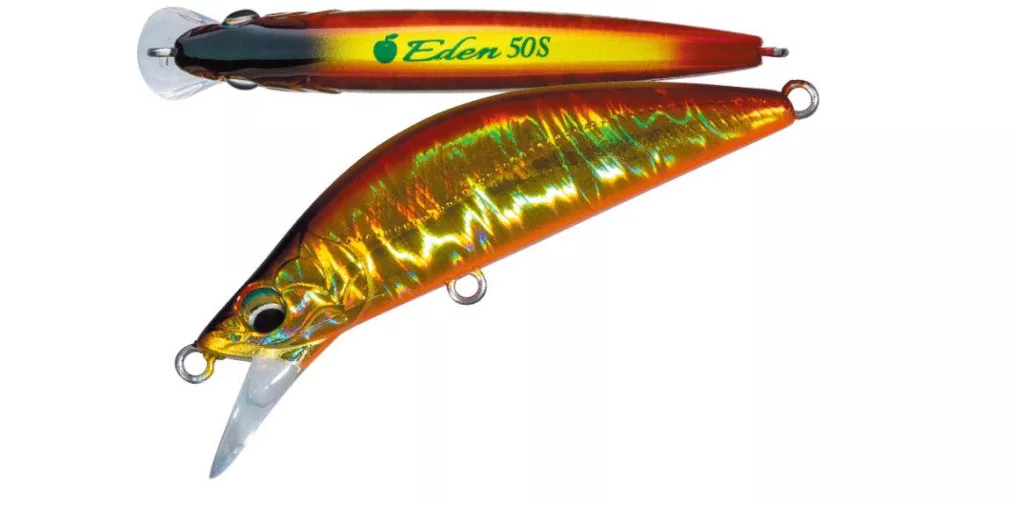 The package includes: Major Craft Finetail Eden 45S 4.5cm 3.7gr #015 Laser Red Gold Sinking Wobbler