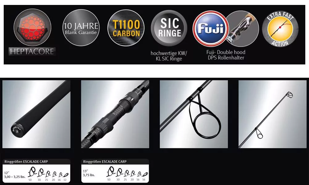 Discover the Sportex Escalade Carp boilie rod, designed for uncompromising carp anglers! This premium category rod is made with the latest technology and high-quality materials to provide maximum performance on every fishing trip. Whether it's for long casts or fighting, the Escalade Carp will be your faithful companion in catching capital carp.