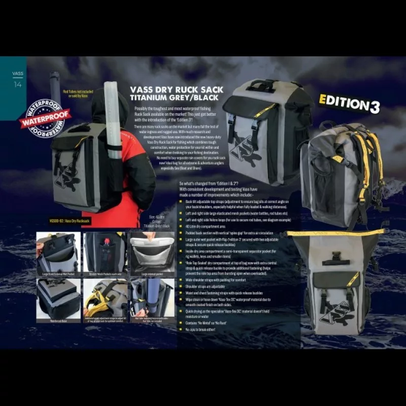 Vass-Tex Dry Fishing Ruck Sack Edition 3 Szürke-Fekete Hátizsák 40l