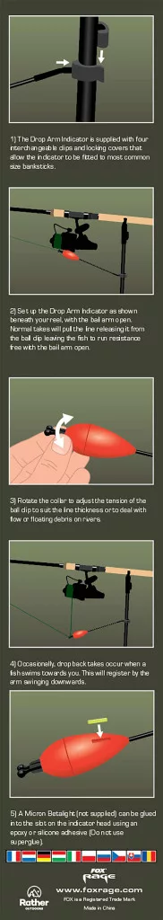 Package contents:Fox Rage Predator Drop Arm Indicator Bite Alarm
