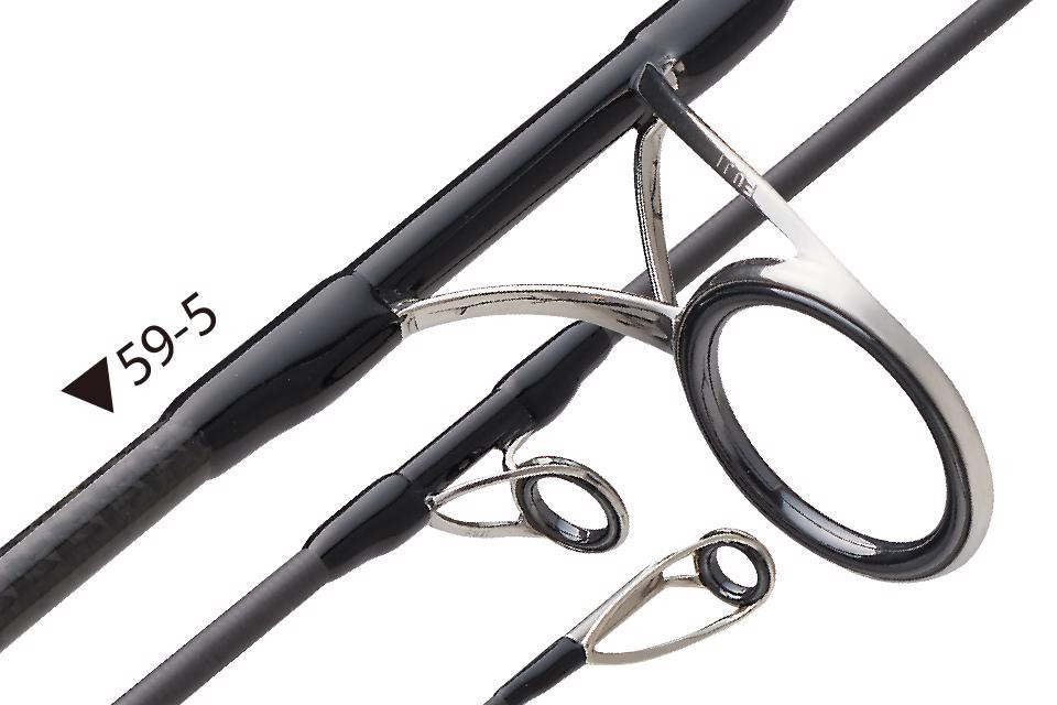 All guides are made of high-strength stainless steel frames. The butt section is equipped with a stainless steel SiC Ocean Guide (MNSG) ring. Other sections feature SiC-S guide K guides. The 59-5 is a full double-foot guide model.