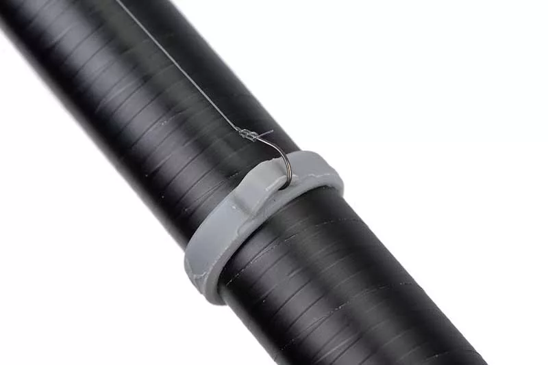 The smart loop design allows you to easily and stably secure the rig on fishing rods and top sets, whether waiting on the stand or during transport on the bank. This feature is a great help if you are working with multiple rigs and want to handle them quickly without them getting tangled or damaged. The understated grey colour and durable rubber material provide a discreet yet robust appearance.