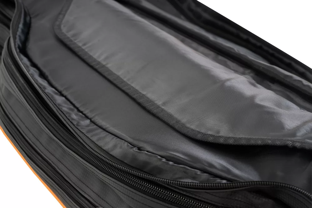 The rod holder is designed for durable use, featuring unique black and orange Guru zipper pullers and a heavy-duty zipper for longer life and performance.
