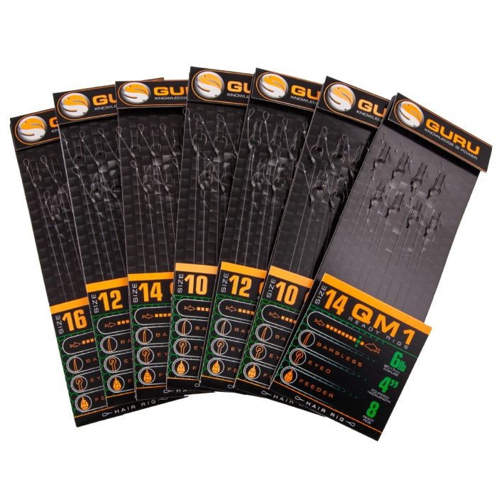 GURU QM1 STANDARD HAIR READY RIGS 4 Size pre-tied QM1 hook 14 (0.19mm)