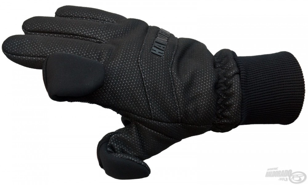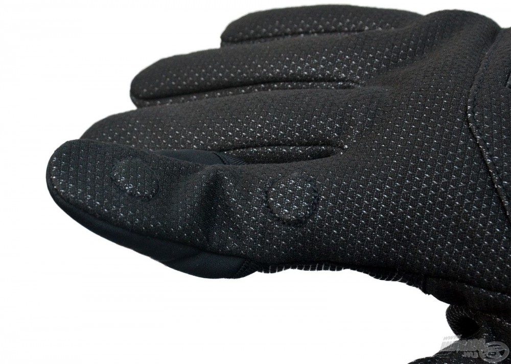It is moderately water-resistant, and its lining is made of soft fleece material. The wrist area has an extended, flexible, elastic design, which fits snugly to the wrist, thus preventing cold from penetrating from above. The palm area has a rubberized coating to ensure a stable grip on wet fishing rods. The thumb and index finger can be folded down with one movement and secured with a magnet located in the material. This is a much better and more practical solution than Velcro fastening, as the line constantly gets caught in Velcro, but here there are no unnecessary frills! With the freed fingertips, you can easily bait or cast, and they can be quickly hidden again.