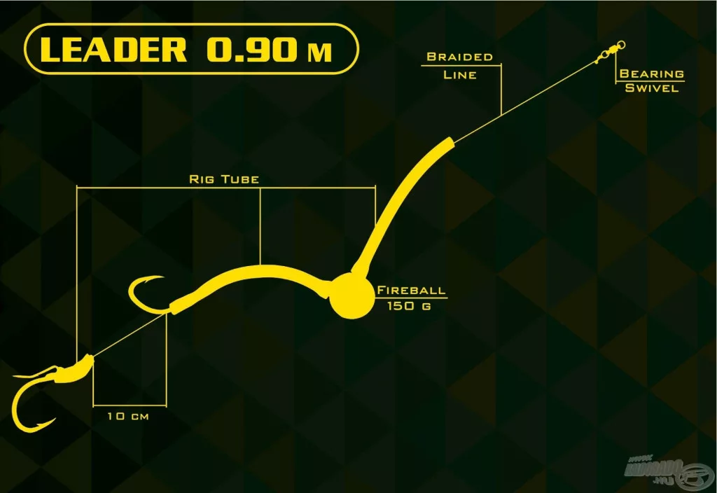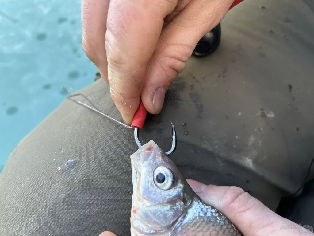 We recommend it for rivers and deeper lakes. In addition to simple baitfish presentation, it also allows for the rigging of extra-large baitfish. The heart of the leader is a special lead weight, with which we can precisely move the bait centimeter by centimeter in holes of different depths. Baitfish rigging: it is advisable to attach it with the hook next to the lead at its nose, and with the further hook at the back of the baitfish. The total length of the leader is 90 centimeters.