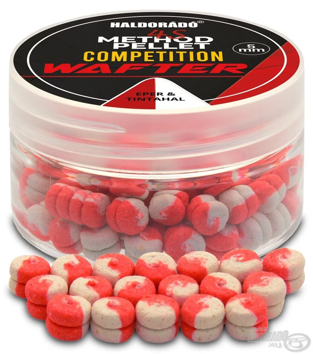 The package contains: Haldorádó 4S Method Pellet Competition 5mm Strawberry & Squid Wafters 30gr