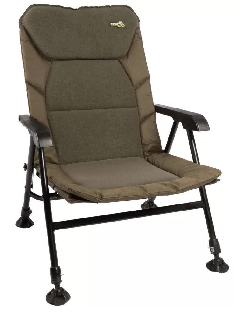 The Mikado Territory armchair is a seating solution specifically designed for relaxation by the water and for more comfortable multi-day fishing trips. The classic-designed armchair is stable yet easily movable, so it can be easily placed on the bank or in a tent. The rigid backrest provides firm support, allowing for a comfortable posture even during prolonged sitting.