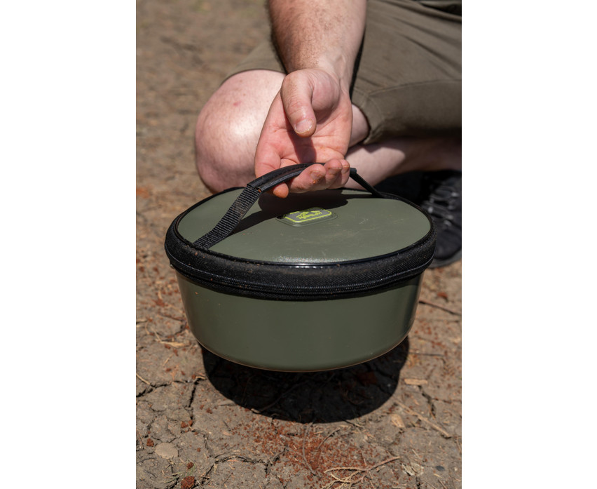 The bowl is made with rigid, molded side walls, guaranteeing structural stability and a long lifespan. The rounded corners facilitate mixing the groundbait, as no hard-to-reach parts are left behind, allowing for quicker and more thorough work. The soft handle provides comfortable transport, even when the bowl is full.