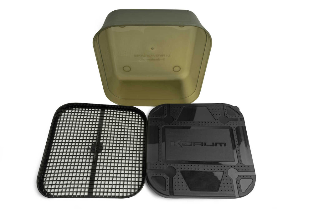 Package contents: 1 pc Korum Maggot Tub And Riddle Bait Box 1.2L.