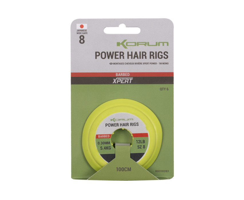 Package contents: Korum Power Hair Rigs 10 BD Eyed, Barbed Pre-tied Hook 6pcs