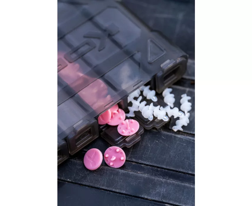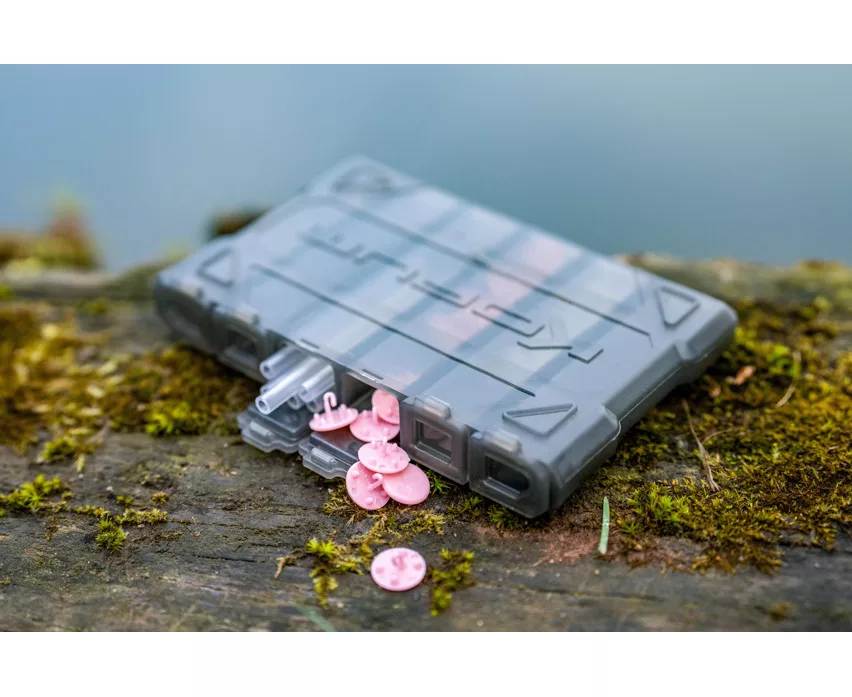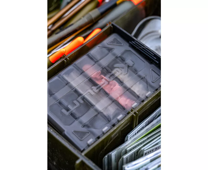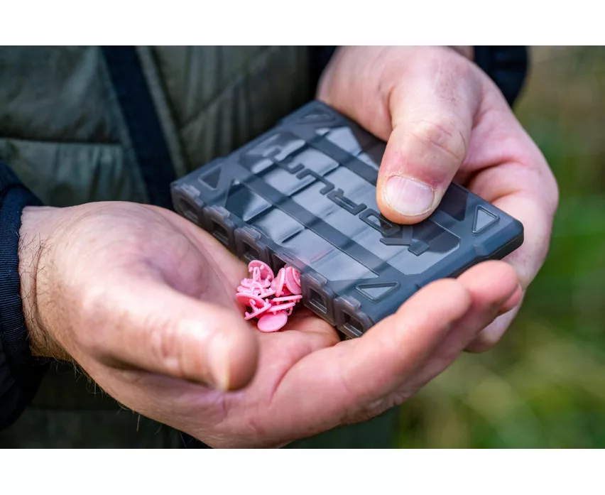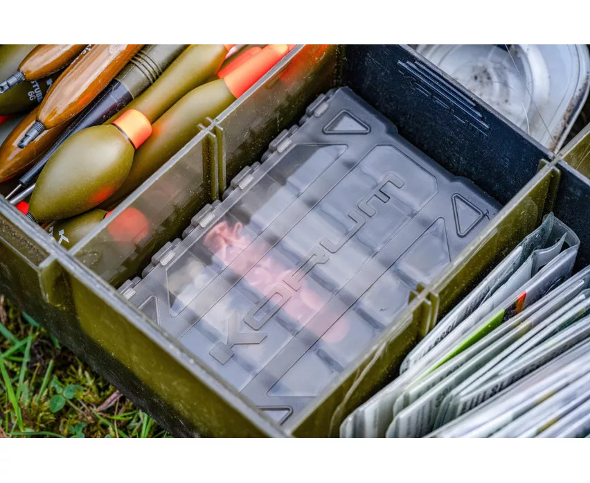 The box offers a practical alternative to storing in bags: small equipment can simply be poured into the compartments, eliminating the need to search for or open separate packages. The internal layout is transparent, and the size of the compartments is ideal for the most frequently used terminal tackle. The box is Blox compatible, so it can be easily integrated into other Korum storage systems, such as tackle boxes or modular systems.