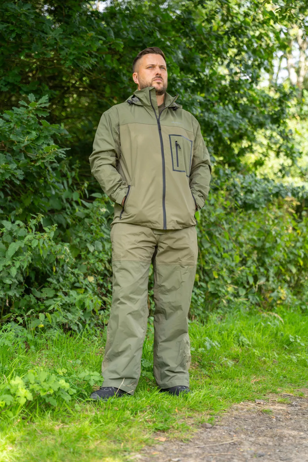 The set is made of modern, waterproof and breathable material that effectively keeps precipitation out. The jacket and overtrousers are available in multiple sizes, so every angler can find the right fit. Adjustable straps and a comfortable cut allow for a customized fit, which is especially important during long, active fishing sessions.