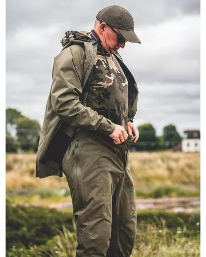 The Korda Kore Drykore Over Trousers Olive Rain Trousers are a true must-have for every angler who wants to enjoy fishing even in the worst weather conditions. These rain trousers are not only waterproof but also extremely breathable, providing comfortable wear even during long fishing sessions. DRYKORE technology guarantees that the trousers keep you dry even in the heaviest rain, as their 15000 mm water column resistance ensures that water does not penetrate the trousers while not hindering body movement.