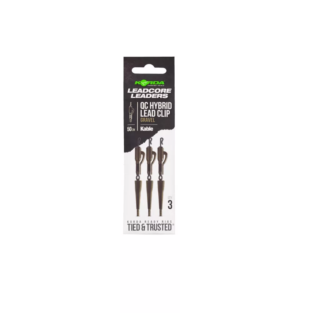 Korda Kable Leadcore Leader Hybrid Lead Clip QC Swivel Gravel Carp Rig 50cm 3pcs