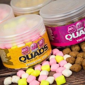 The Mainline 'QUADS' is a new concept within a wide range of hookbaits. Its square shape is unusual for fish, making it harder for them to spit out.
