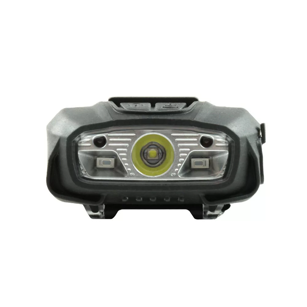 Regarding the design of the lamp body, it is made of hard polycarbonate, which received a thin rubberized layer as a final finish. This makes it resistant to drops from greater heights. During factory drop tests, it was found to be protected up to a height of 3 meters. Its lens is made of anti-reflective plastic, so it does not absorb most of the light, meaning almost all of the emitted light is utilized. The control interface, consisting of 2 buttons, is located on top of the lamp. One button is for constant illumination, and short presses allow switching between levels. The other button operates the motion-sensor lighting on the same principle.
