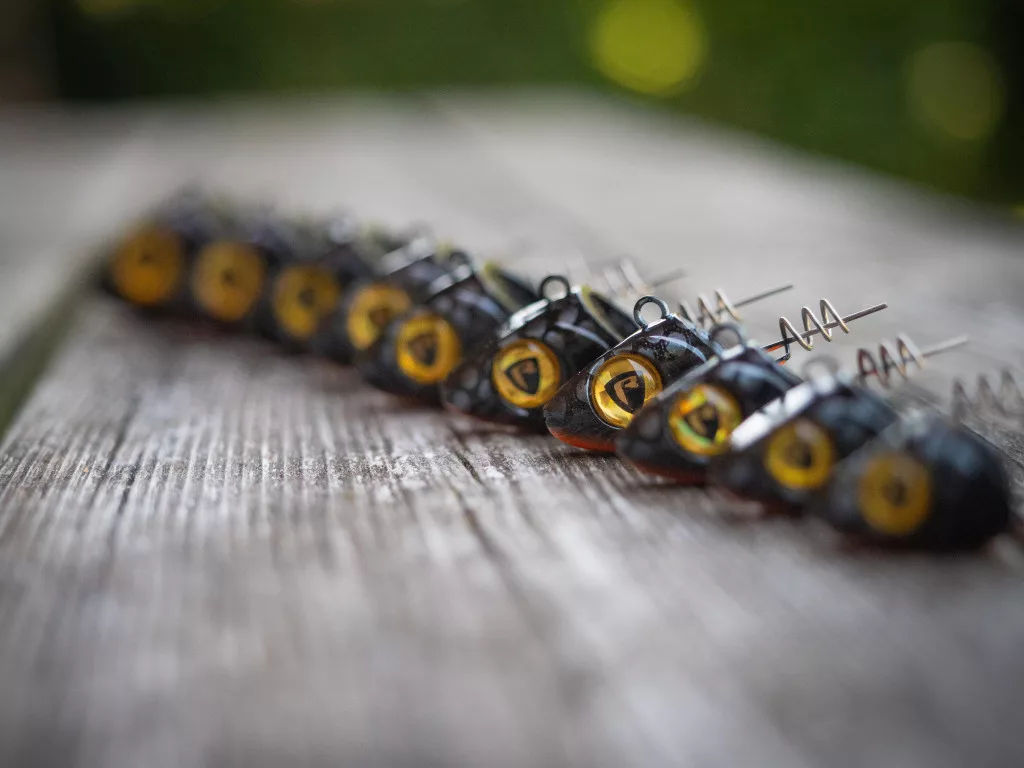 The jig head is equipped with a long, spiral (corkscrew) retaining spike, which ensures the stable and secure attachment of soft plastic baits – such as the Slick Finesse, Slick Shad, or Slick Fast. This design allows the bait to stay in place even during intense casts or fights, enabling the angler to fully concentrate on bites.