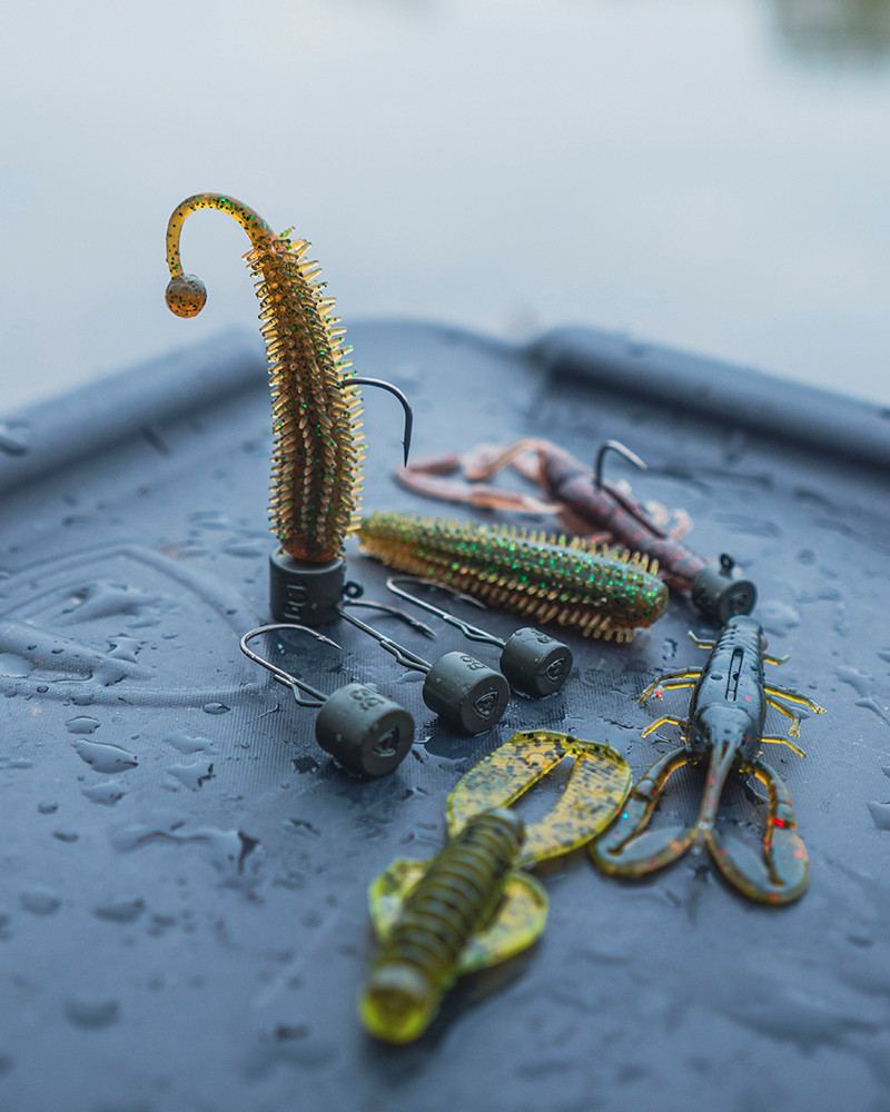 The jig head is equipped with ultra-sharp hooks that ensure stable and reliable hooking, making every bite more effective. The built-in bait holder hook ensures that the bait stays securely in place cast after cast, preventing unnecessary movement. The discreet matte green coating blends perfectly into the environment, thus not alarming more suspicious fish, which is especially important in clear water or when targeting cautious predators.