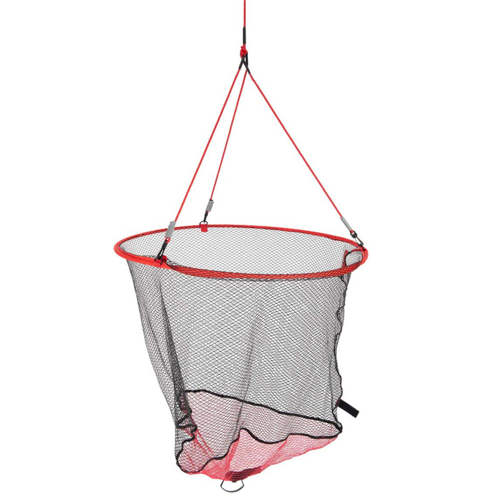 Why is it ideal for fishing?: Designed for fishing from high banks, piers, and bridges, where a traditional landing net with a handle is no longer practical. Available in two sizes: 60 cm and 80 cm versions, so you can choose the appropriate net for the size of your catch. The long rope and weighted design allow for precise placement of the net, even in deeper or harder-to-reach waters. The rubber-coated net is gentle on fish, minimizing stress and injury, while its durable material resists wear and tear during fishing. The net comes with a large, square storage bag, providing convenient transport and organized storage.