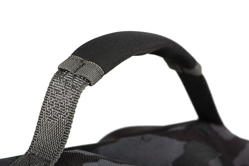 Its size is 23.5 × 49 × 36.5 cm, tapering to 25 cm, making it easy to handle and pack. The front zipper is accessible from two sides, which simplifies inserting and removing waders or boots. The rear mesh pocket offers additional storage space for smaller accessories. The neoprene carry handle provides a comfortable grip, making the bag easy to transport even during longer fishing trips.