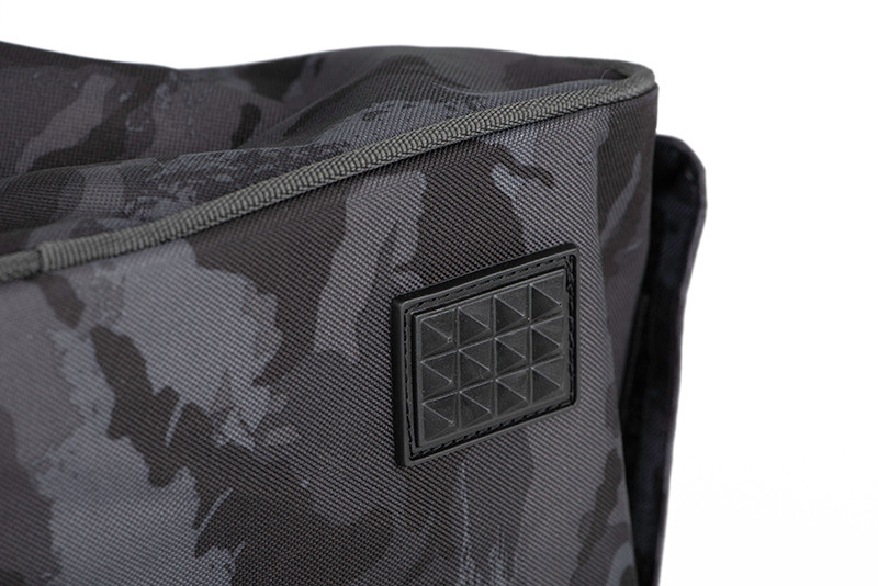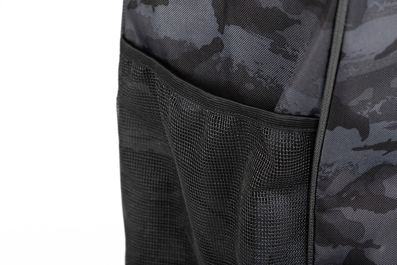Its material is 100% treated 500-denier fabric, which is extremely durable and resistant to moisture. This quality material guarantees that the bag will maintain its shape and functionality in the long term. The camouflage (camo) design stylishly fits anglers' equipment while providing a discreet appearance in nature.