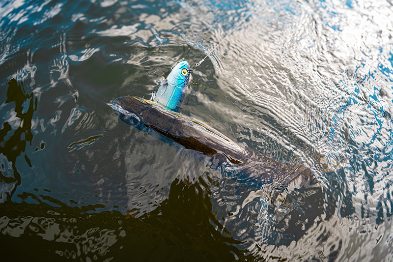 The lure is available in huge sizes: 27 cm (10”) and 32 cm (12.6”) versions, making it a perfect choice for the largest pike. The multi-section body creates a super realistic, natural fish movement that very accurately mimics large baitfish. This movement and profile provoke aggressive strikes from predators, so the angler can expect a serious chance of a bite with every cast.