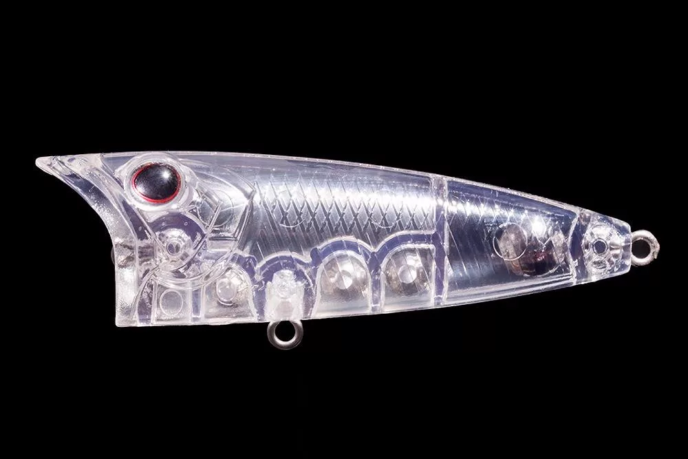 For example, when a pencil bait is not attractive enough. The unique performance and role of a popper lies in its ability to attract bass (bass) from a wide area, even from deep water, and even when they are hidden in cover (cover). In addition to excellent casting distance and accuracy, key attraction factors include the popping sound (popping sound), splash (splash), rattle (rattle), and swimming action that minimizes displacement distance. It can be used anywhere, from narrow pinpoints (pinpoints) in productive zones (productive zones) to vast weed beds in open water. Developed with the aim of significantly increasing the popper's presence by improving all its performance characteristics, the LOUDER 50 is a compact popper.