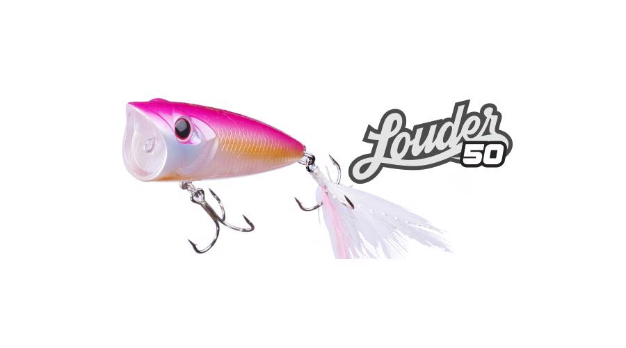 For example, when a pencil bait is not attractive enough. The unique performance and role of the popper lies in its ability to attract bass from a wide area, even from deep water, and even when they are hidden in cover. In addition to excellent casting distance and accuracy, key attraction factors include the popping (cupping) sound, splash, rattle, and swimming action that minimizes displacement distance. It can be used anywhere, from pinpoints in productive zones to vast weed beds in open water. Developed with the aim of significantly increasing the popper's presence by improving all its performance characteristics, the LOUDER 50 is a compact popper.