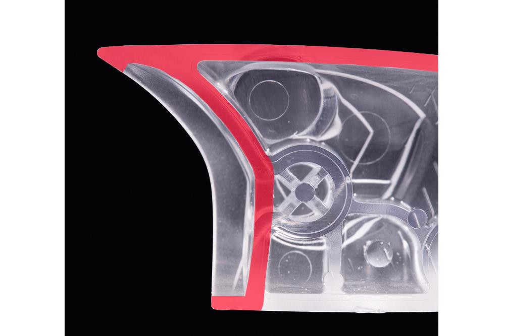 » The feathered rear hook minimizes displacement