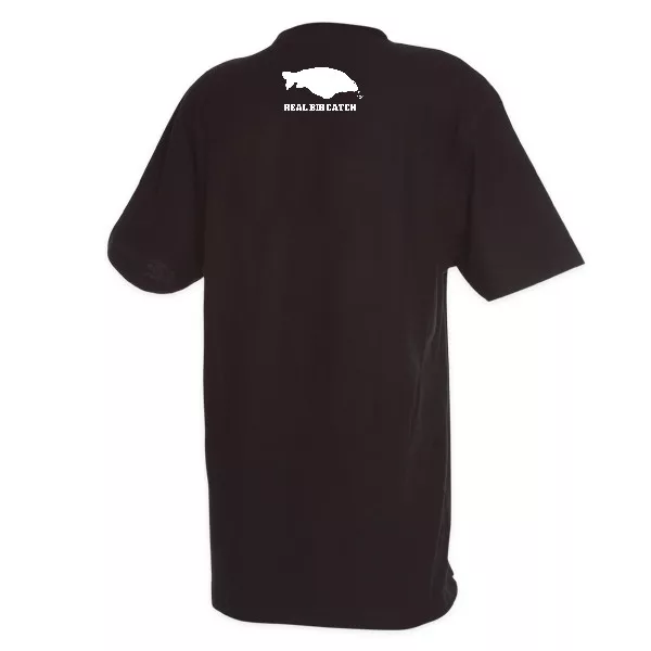 High-quality, limited edition SBS round neck, black t-shirt, with a white SBS logo and domain name (www.sbsbaits.com) on the front, and also a white Real Big Catch logo and lettering on the back!