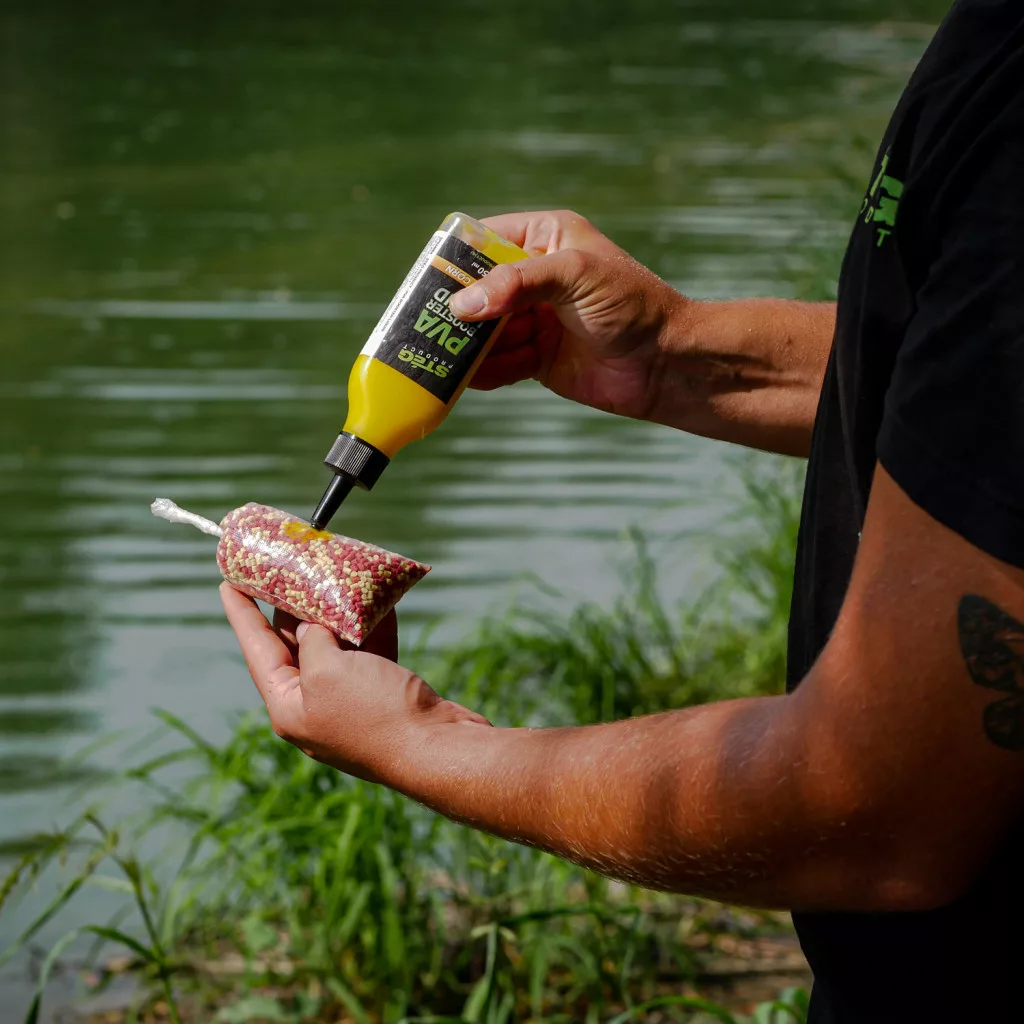Not only can we increase the attracting effect, but fish will also search longer near our hook on the bottom during our feeding. Compared to other aromas, it has high density, so the current on the bottom cannot easily sweep it away from the feeding area, thus luring fish away from our hook. Its spouted design allows easy application into the bag. PVA friendly product!